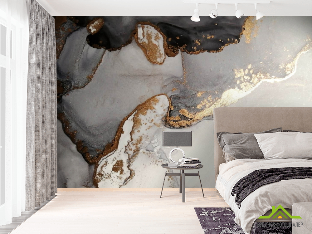 Фотообои Флюид чб с золотом Фотообои Флюид чб с золотом