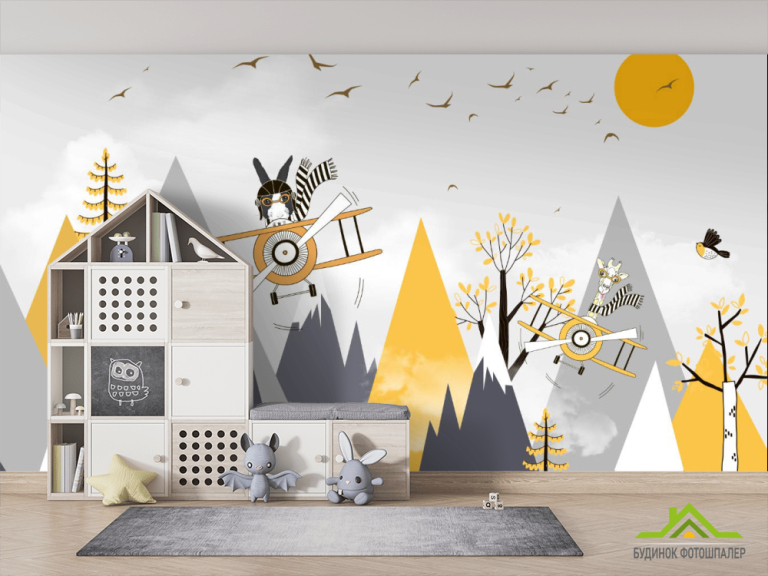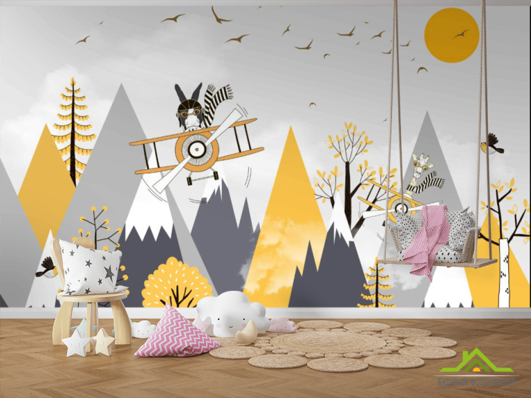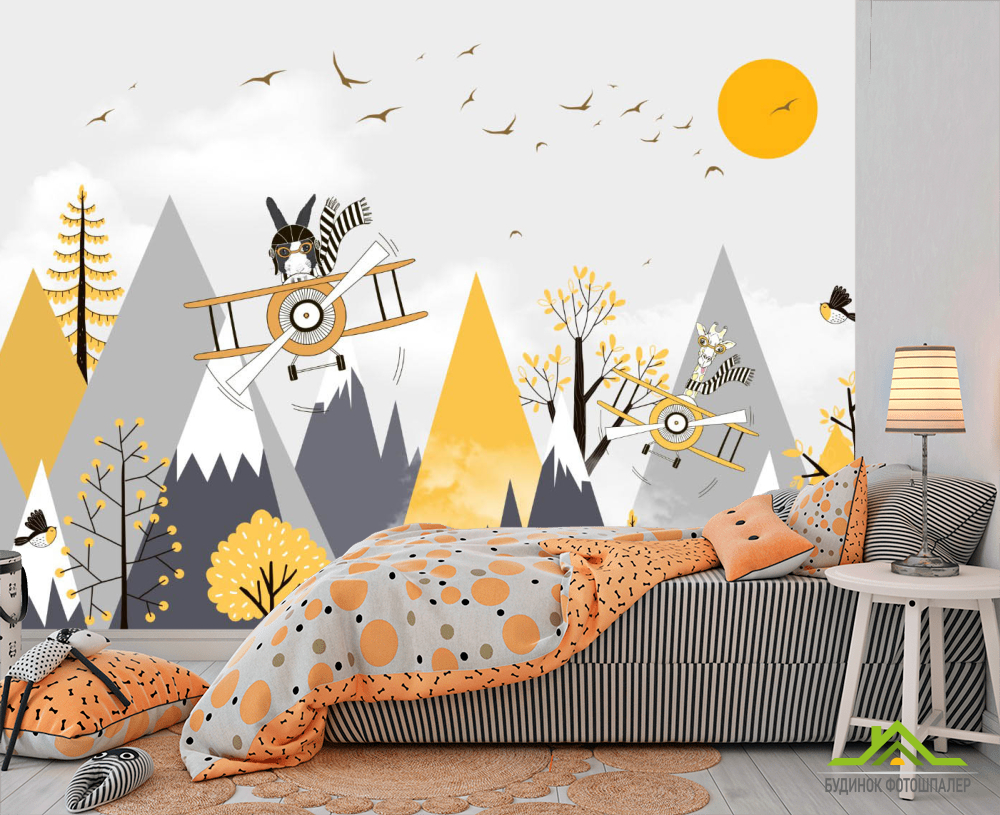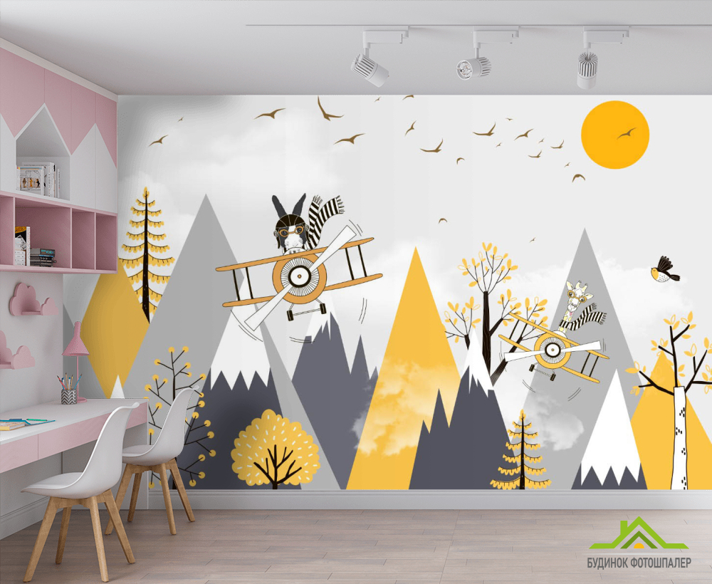 Фотообои Горы детские жёлто-серые Фотообои Горы детские жёлто-серые