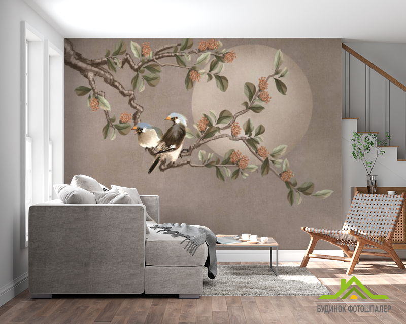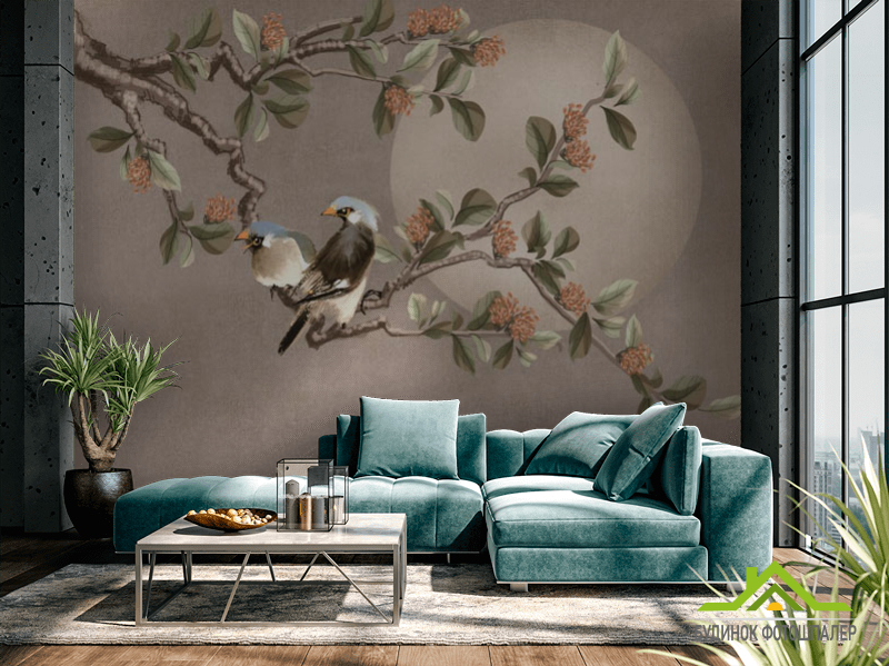Фотообои птицы на ветке Фотообои птицы на ветке