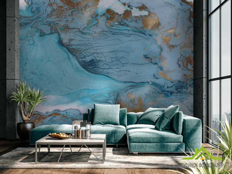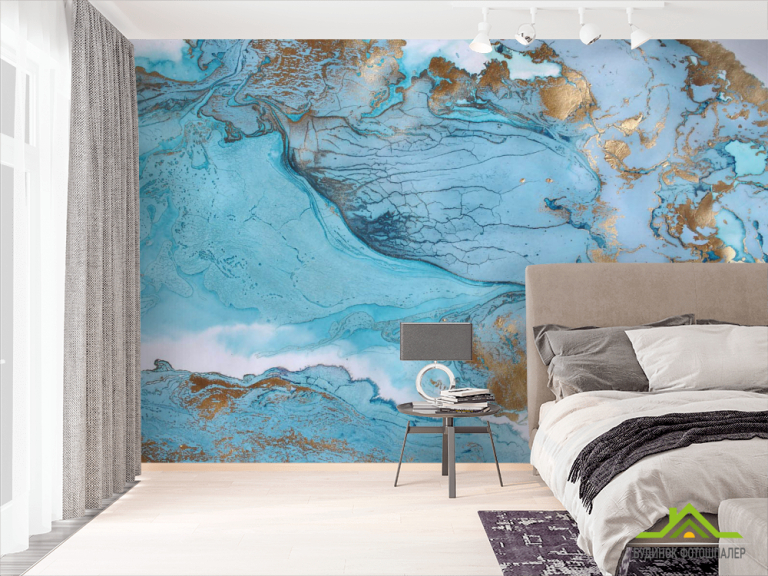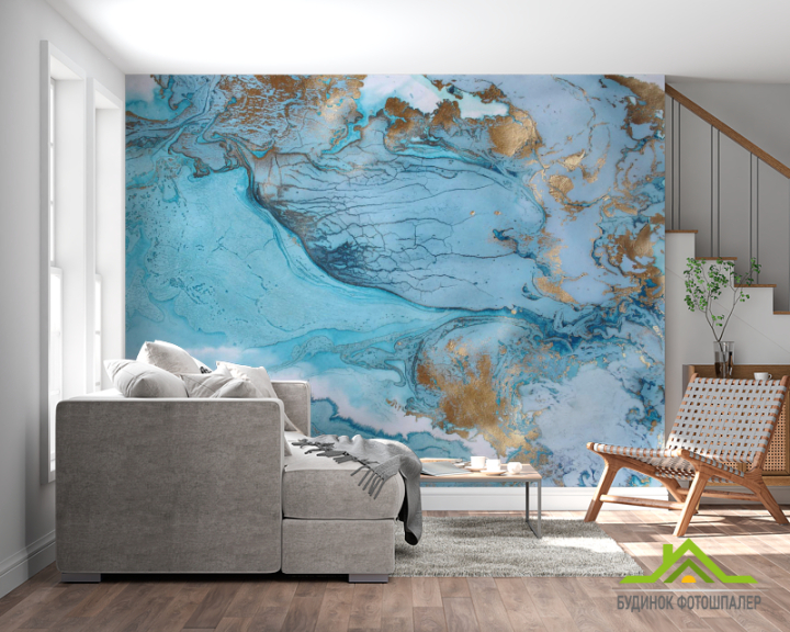 Фотообои Голубой флюид с золотыми участками Фотообои Голубой флюид с золотыми участками