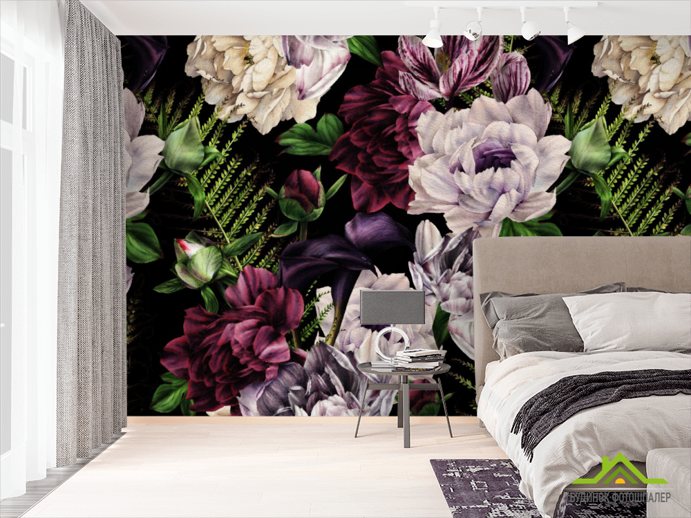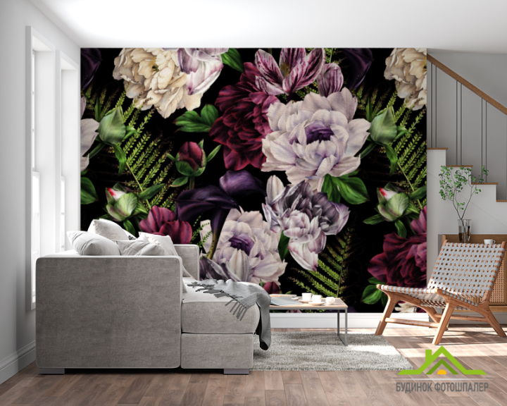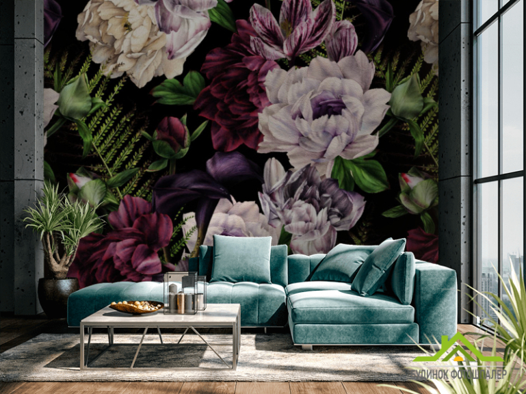 Фотообои Темный принт с винтажными цветами Фотообои Темный принт с винтажными цветами