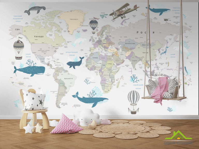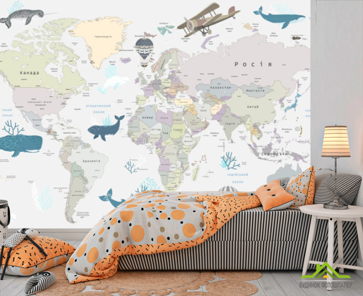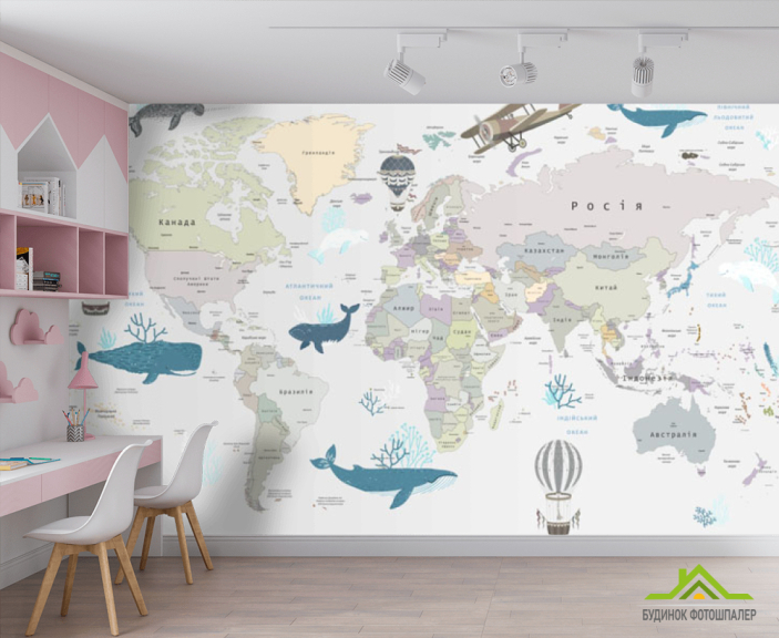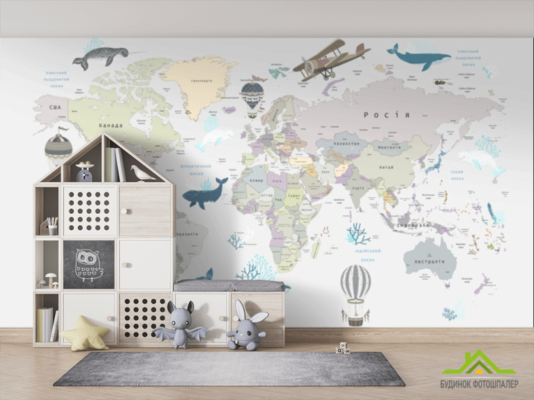 Фотообои Серая карта с морскими животными Фотообои Серая карта с морскими животными