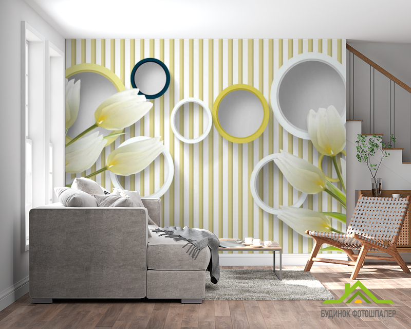 Фотообои цветы и круги 3д Фотообои цветы и круги 3д