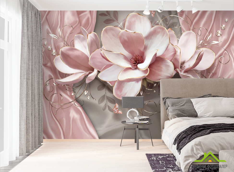 Фотообои Розовые 3д цветы Фотообои Розовые 3д цветы