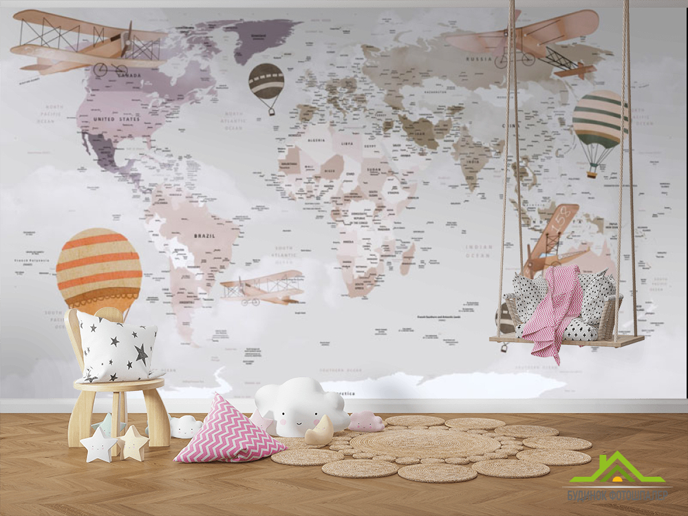 Фотообои Бежевая карта детская Фотообои Бежевая карта детская