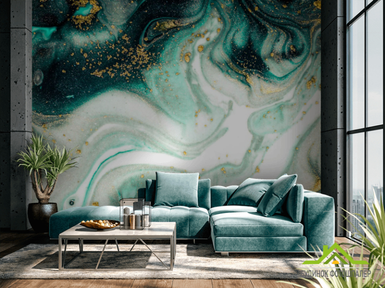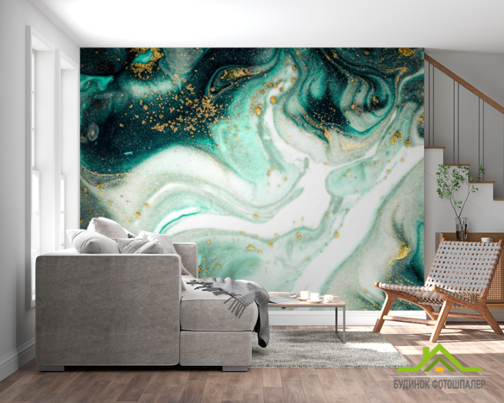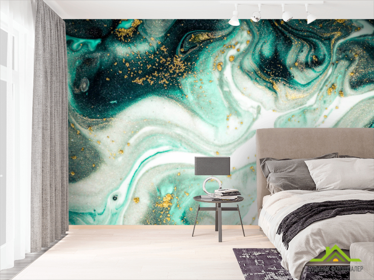 Фотообои Зелёный флюид алкоинк Фотообои Зелёный флюид алкоинк