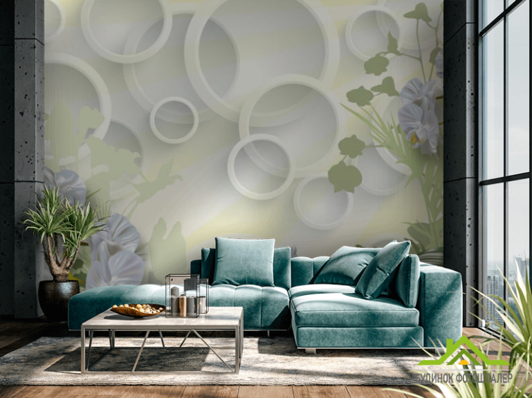 Фотообои цветы и круги 3д