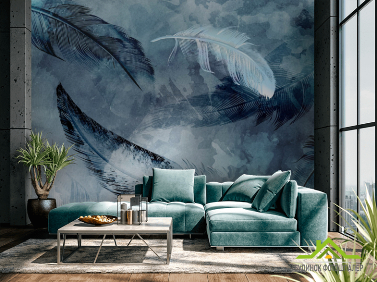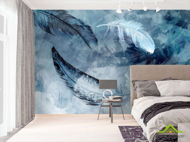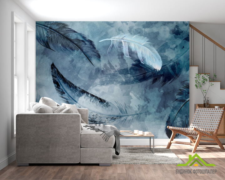 Фотообои Синие акварельные перья Фотообои Синие акварельные перья