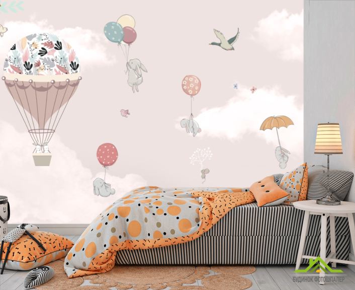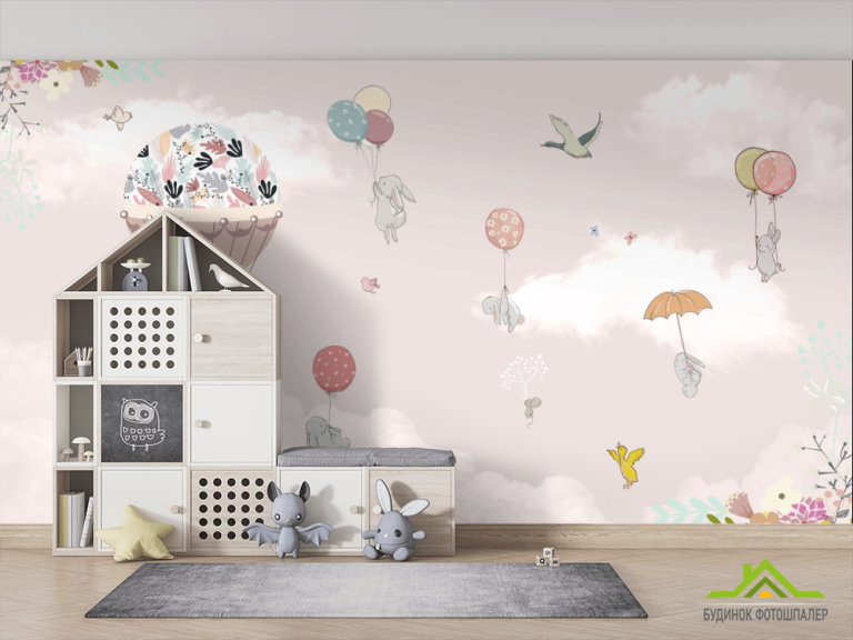 Фотообои зайки на воздушных шарах Фотообои зайки на воздушных шарах
