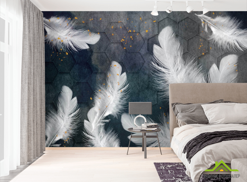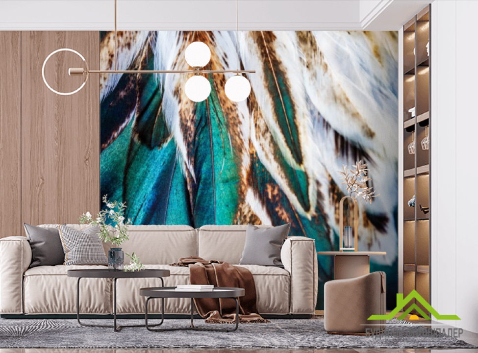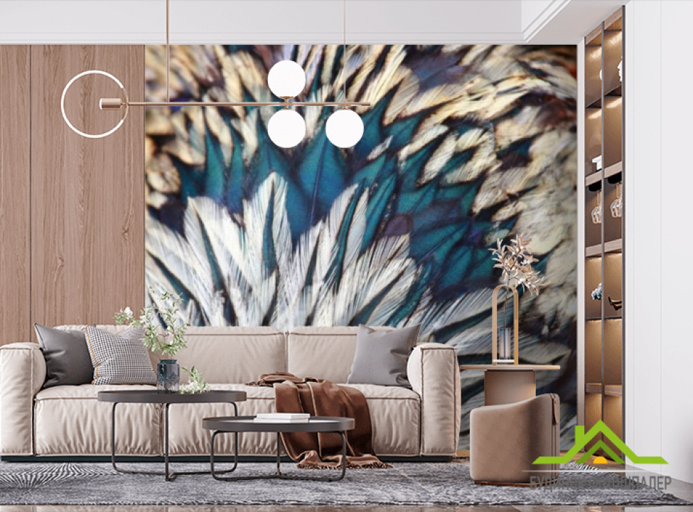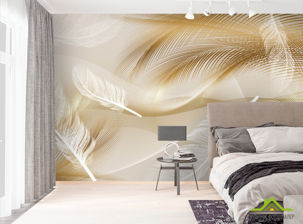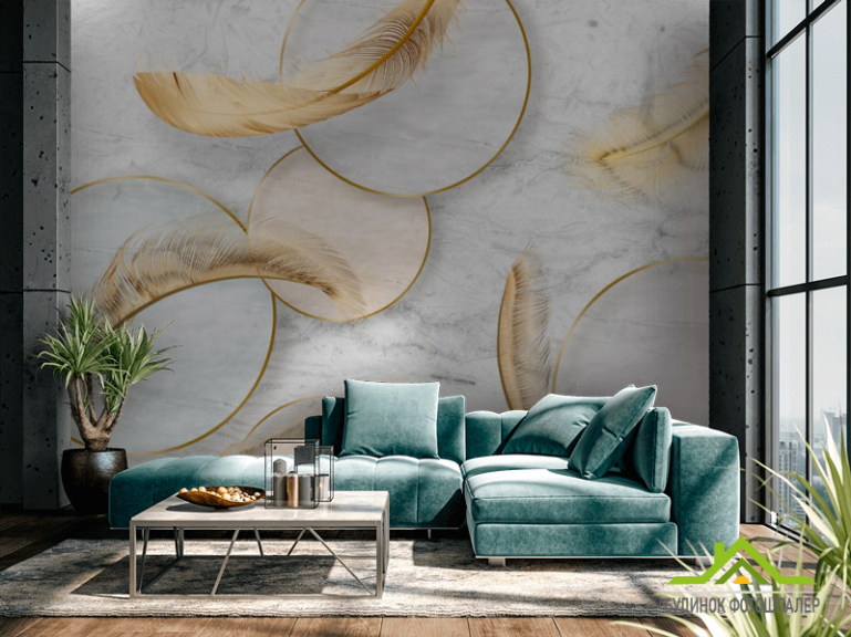 Фотообои Золотые перья с кругами Фотообои Золотые перья с кругами