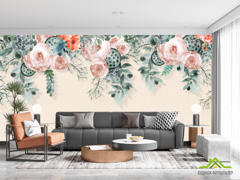 Фотообои Акварельные цветы с потолка Фотообои Акварельные цветы с потолка