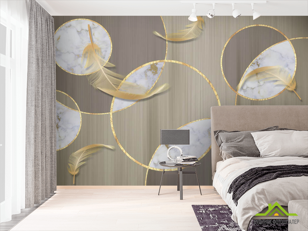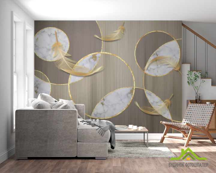 Фотообои Золотые круги и перья Фотообои Золотые круги и перья