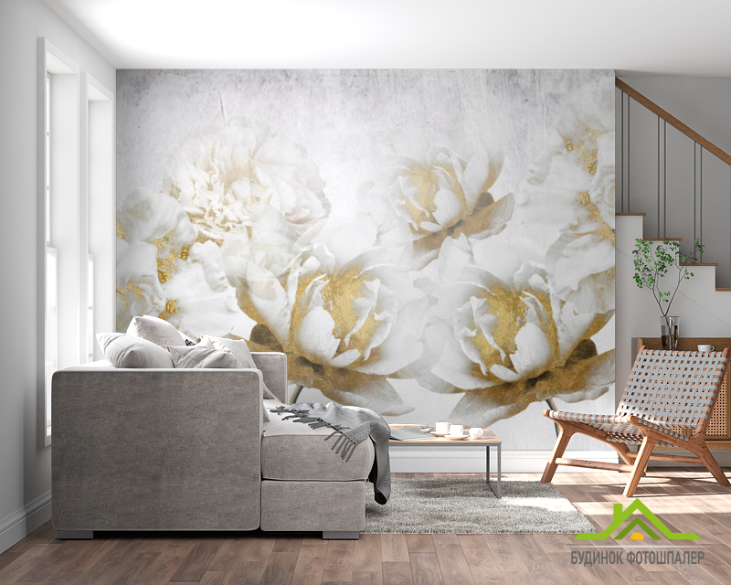 Фотообои Белые цветы с золотом Фотообои Белые цветы с золотом