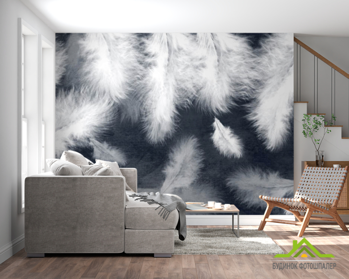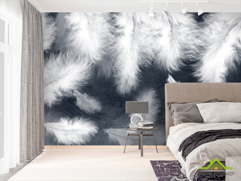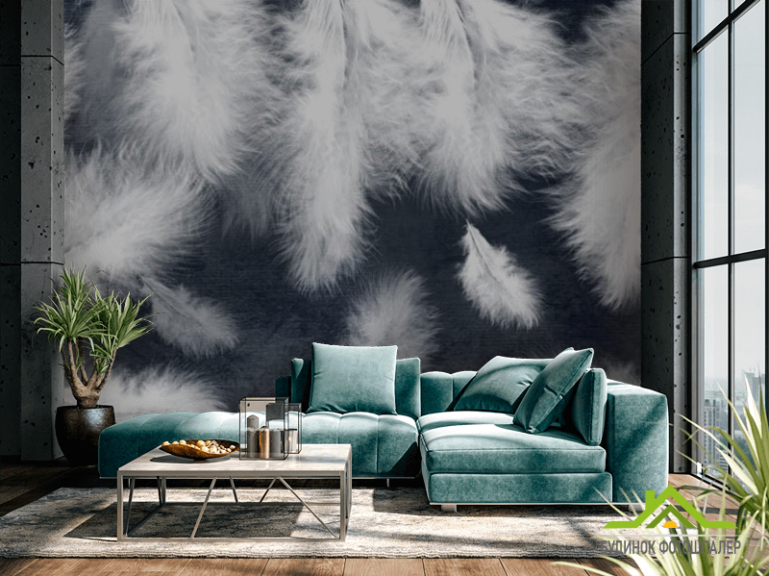 Фотообои Белые перья на синем фоне Фотообои Белые перья на синем фоне