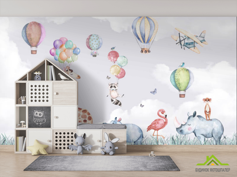 Фотообои Животные на воздушном шаре Фотообои Животные на воздушном шаре