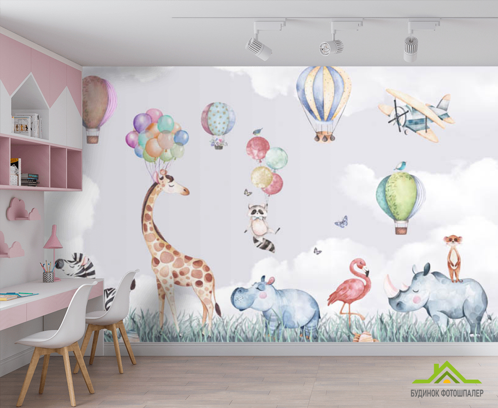 Фотообои Животные на воздушном шаре