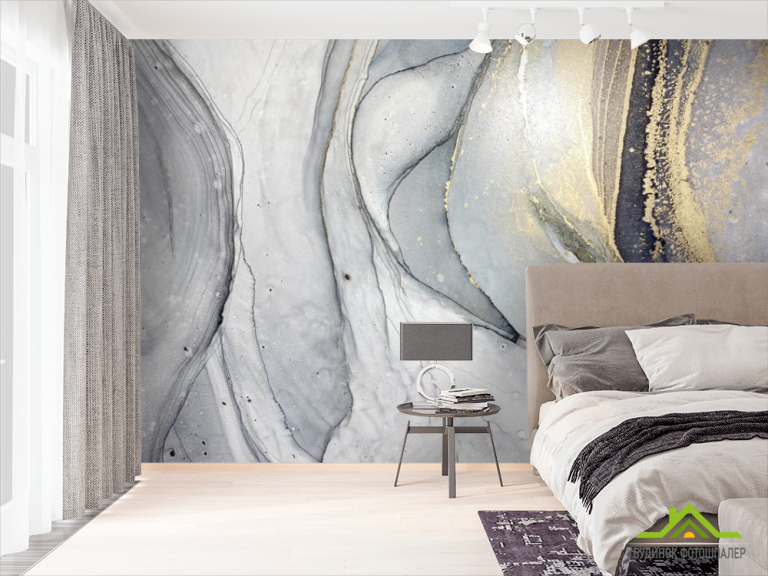 Фотообои Серый fluid art с золотом Фотообои Серый fluid art с золотом