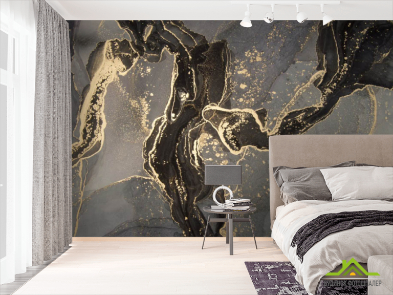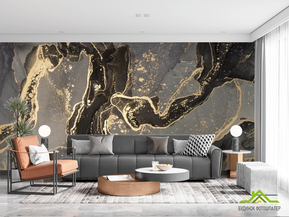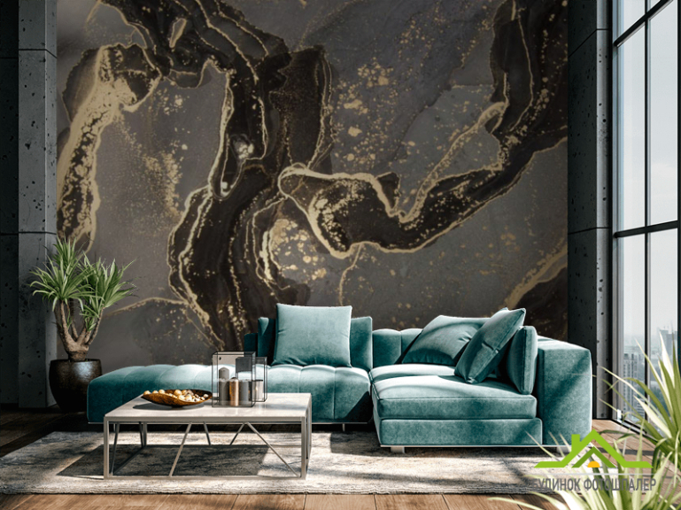 Фотообои Чёрный fluid art с золотом Фотообои Чёрный fluid art с золотом