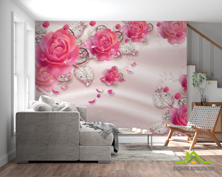 Фотообои 3d розовые цветы Фотообои 3d розовые цветы