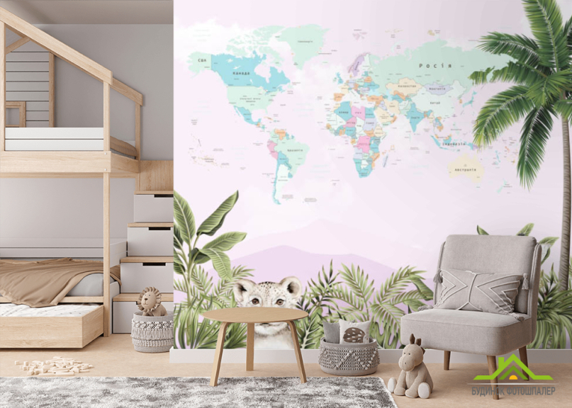 Фотообои Карта с животными Фотообои Карта с животными