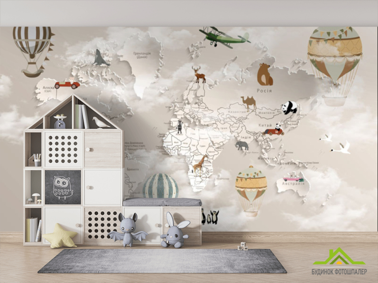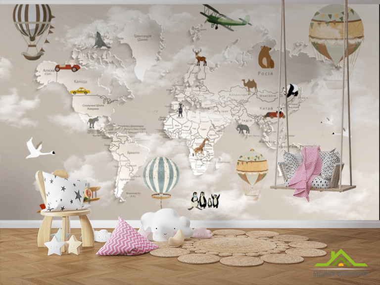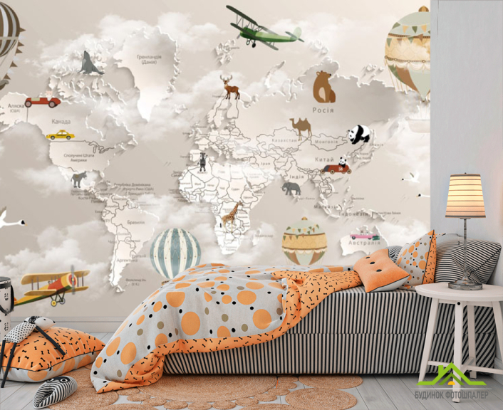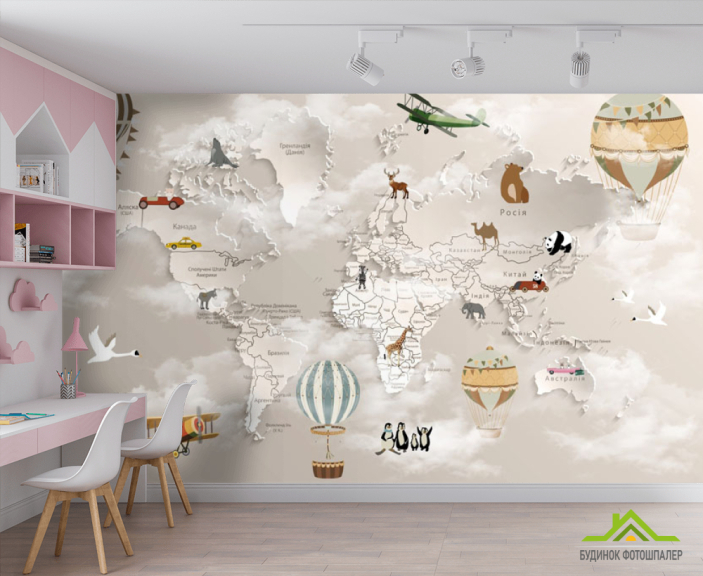 Фотообои Коричневая 3д карта детская на украинском