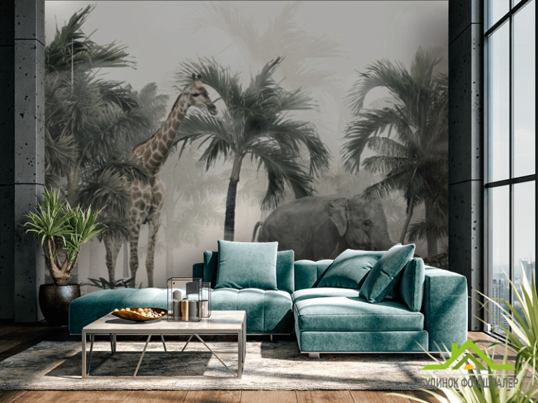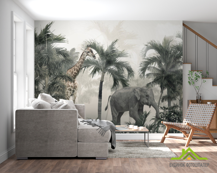 Фотообои Пальмы и тропические животные