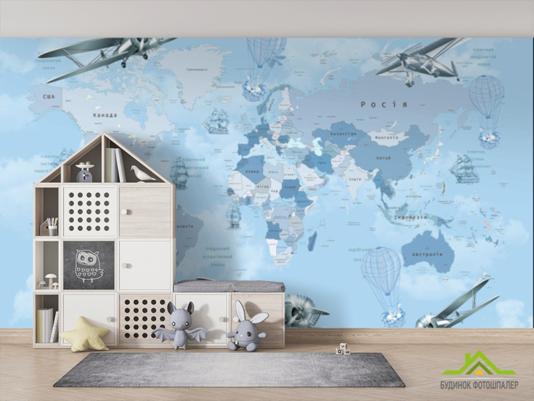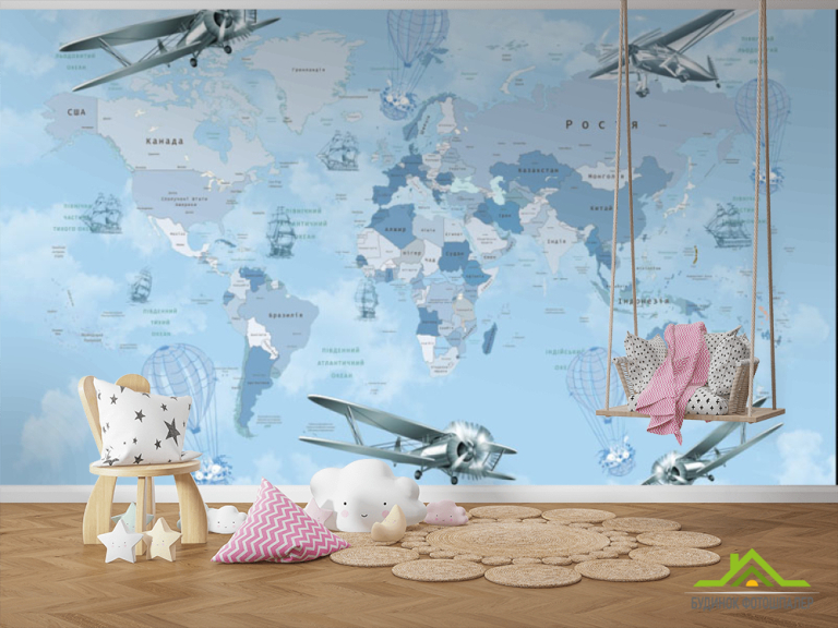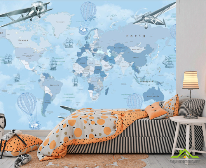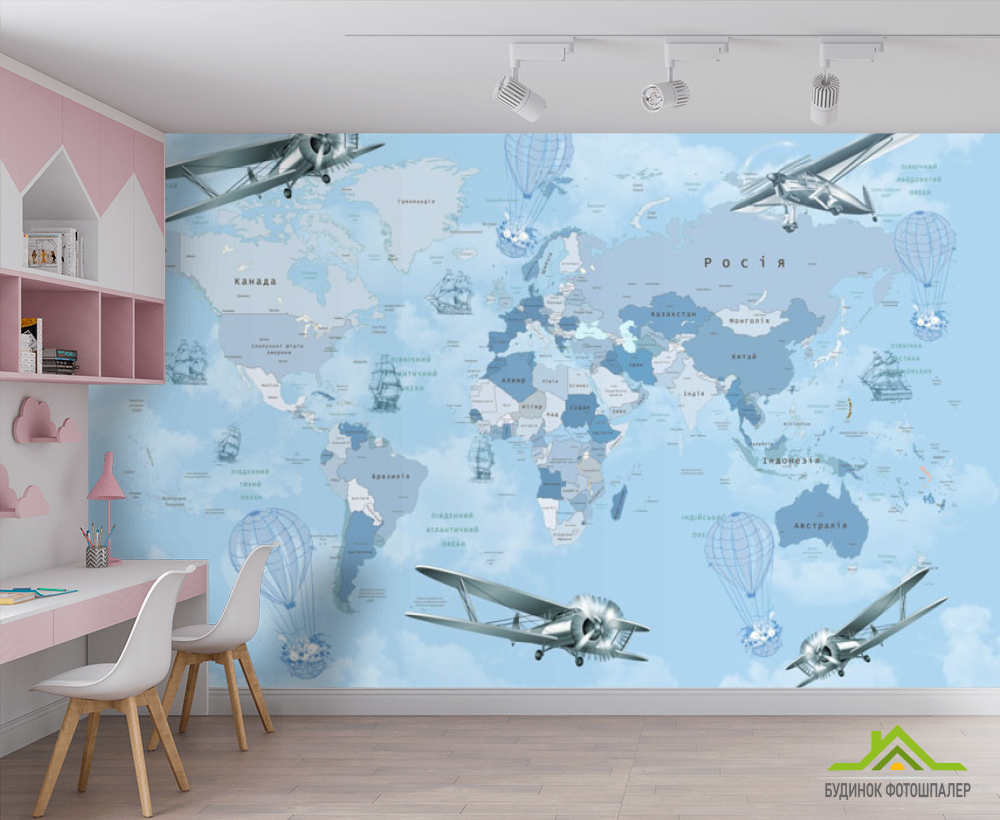 Фотообои Голубая карта на украинском с самолетами Фотообои Голубая карта на украинском с самолетами
