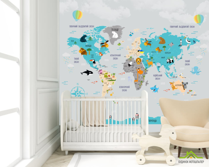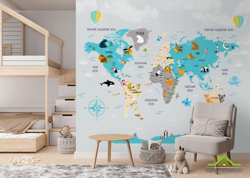 Фотообои Карта детская с животными Фотообои Карта детская с животными