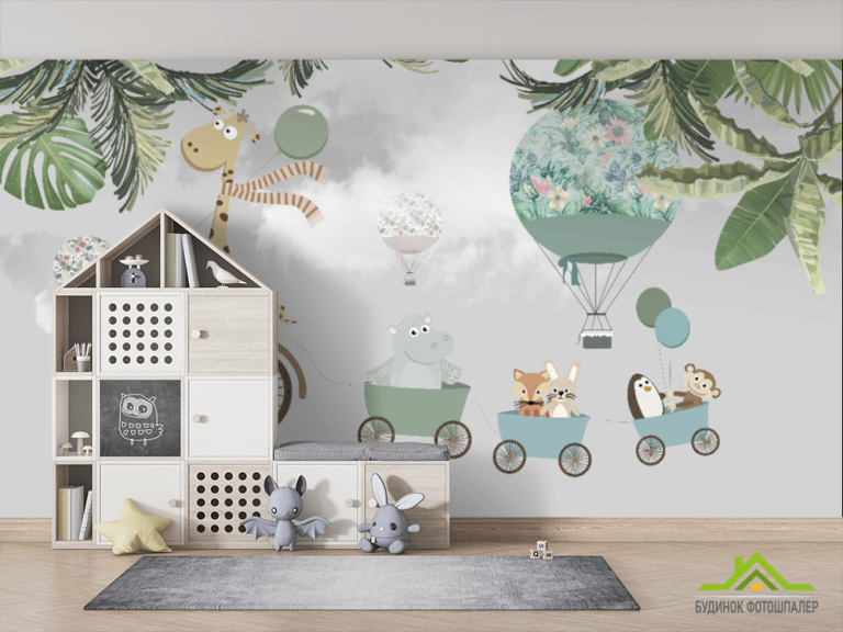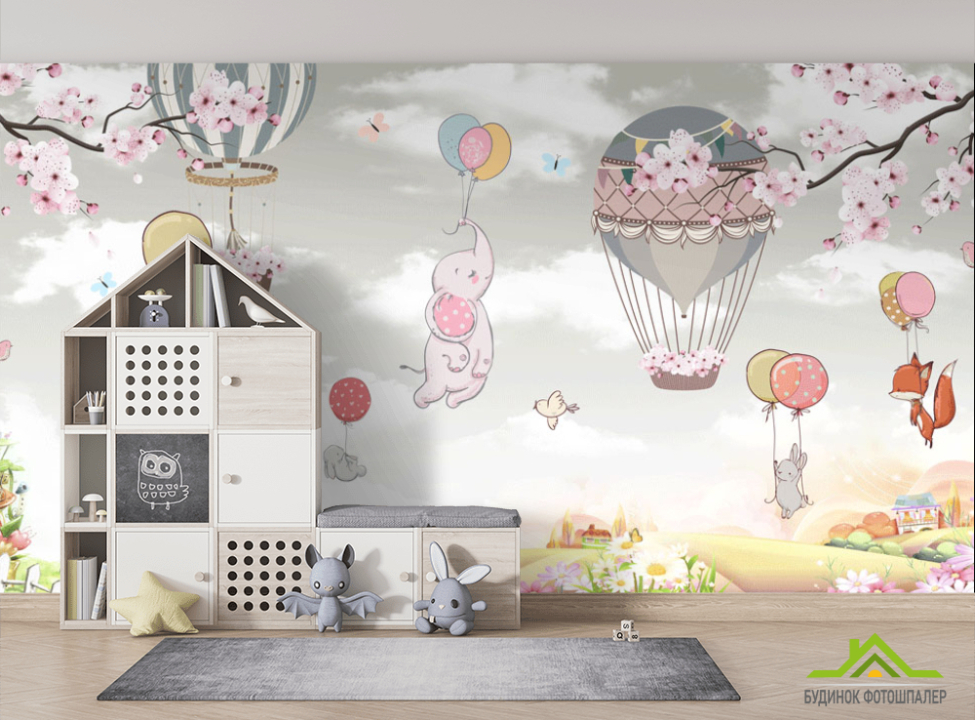 Фотообои животные на воздушных шариках Фотообои животные на воздушных шариках