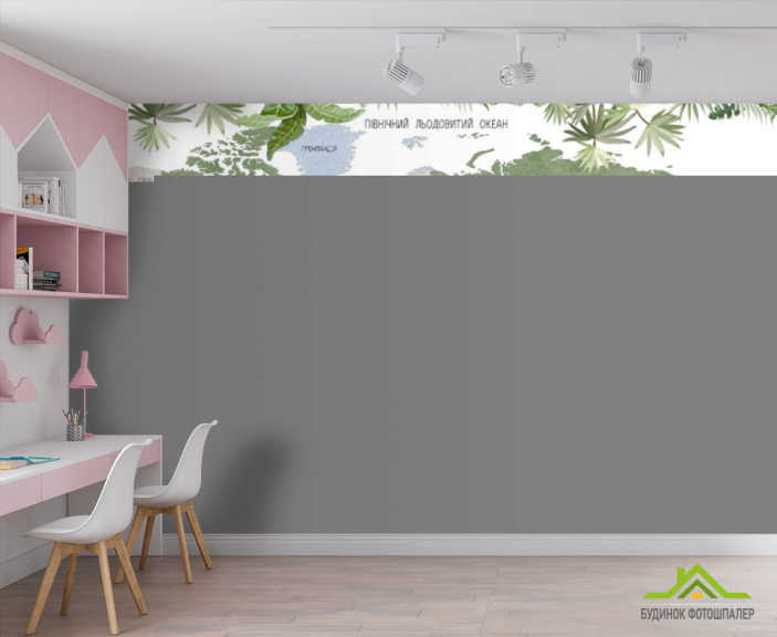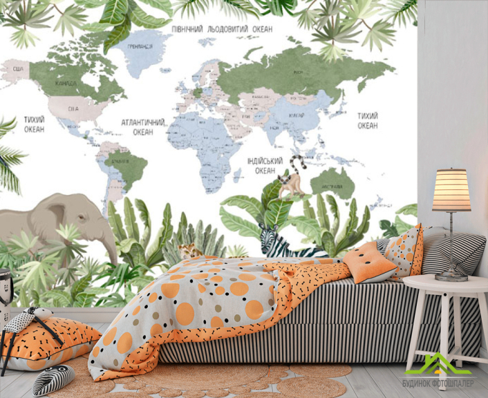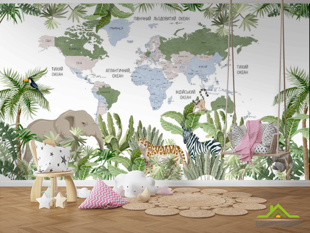 Фотообои Карта детская с тропическим лесом и животными на украинском Фотообои Карта детская с тропическим лесом и животными на украинском