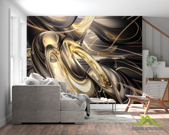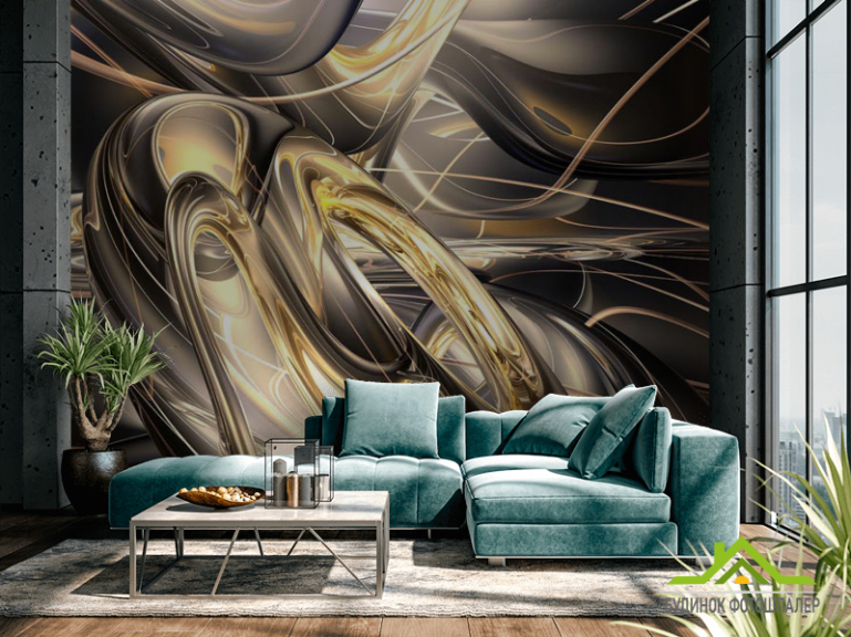 Фотообои Золотая абстракция с еффектом 3д Фотообои Золотая абстракция с еффектом 3д