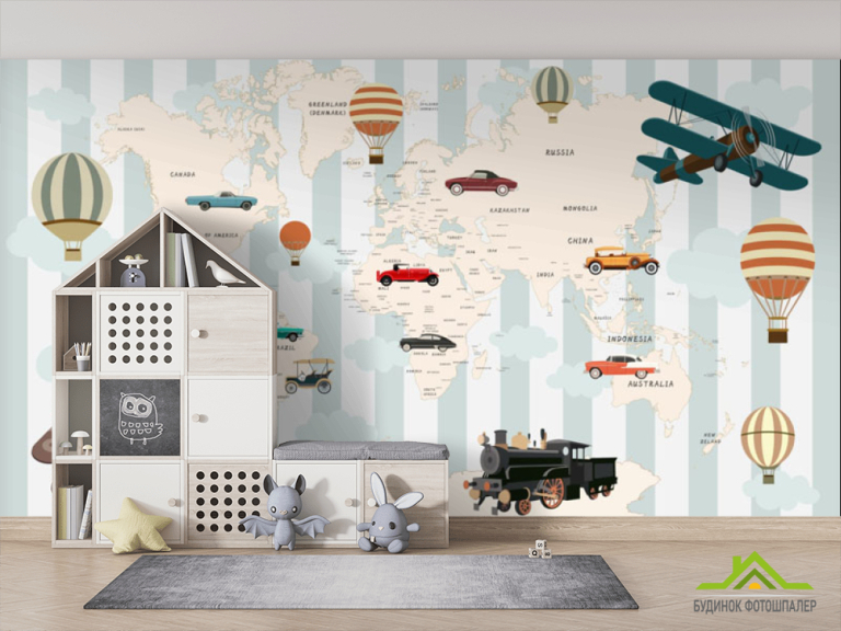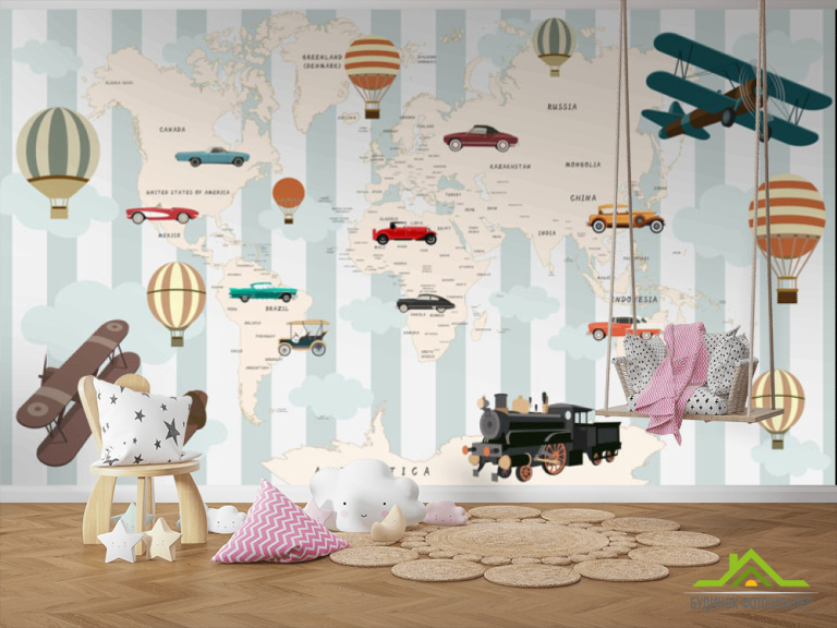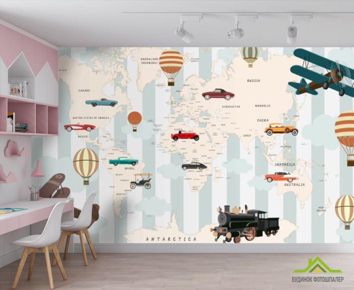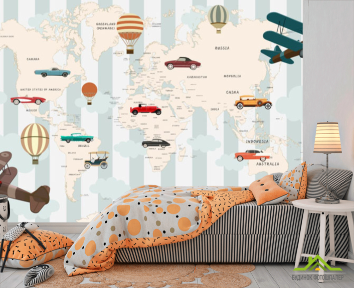 Фотообои Карта детская для мальчика с машинами Фотообои Карта детская для мальчика с машинами