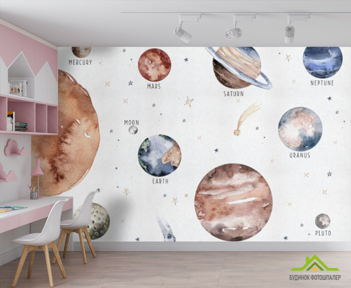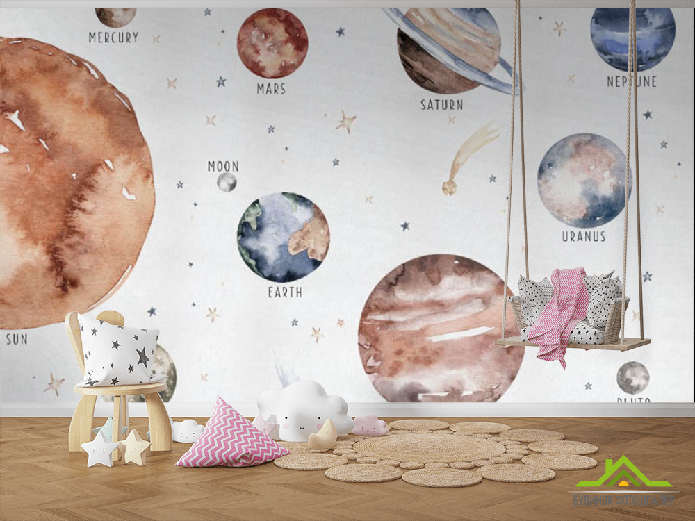 Фотообои Планеты акварельные Фотообои Планеты акварельные