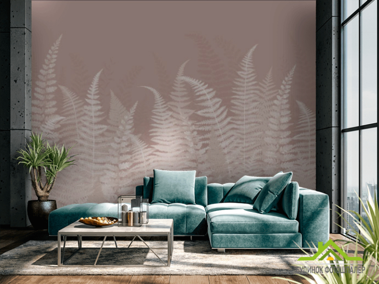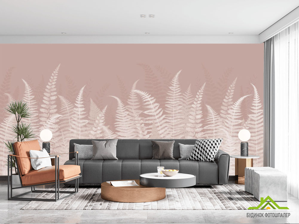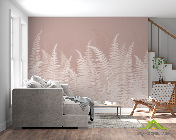 Фотообои Листья папоротника розовые Фотообои Листья папоротника розовые