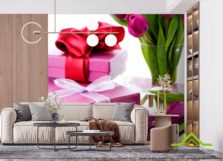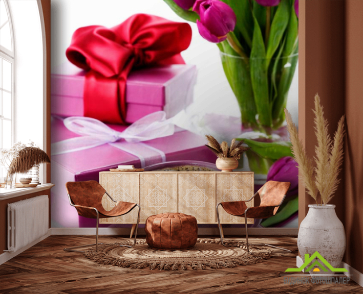 Фотообои Тюльпаны, подарки, кофе Фотообои Тюльпаны, подарки, кофе