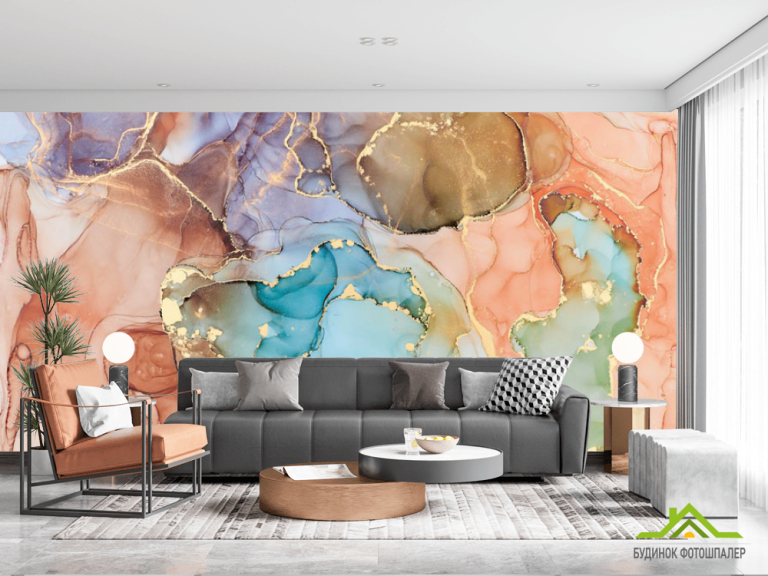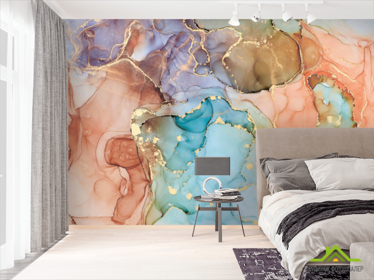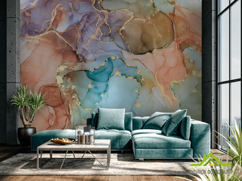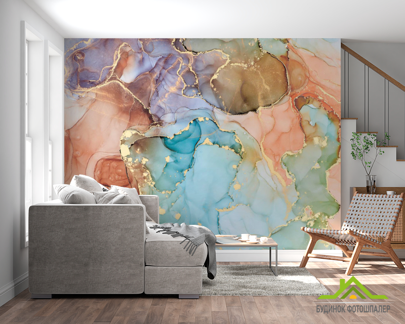 Фотообои Цветной флюид с золотом