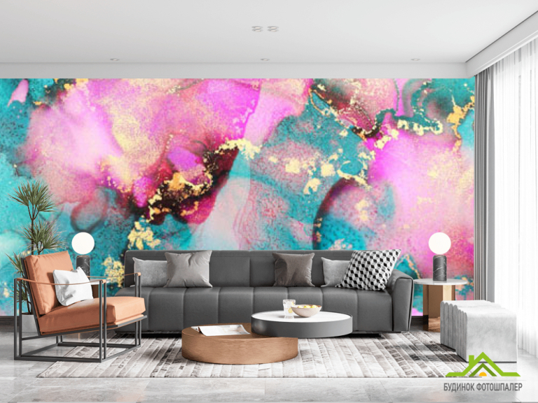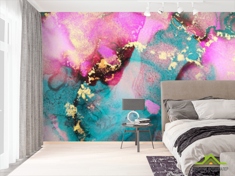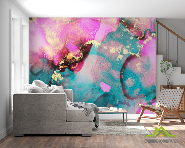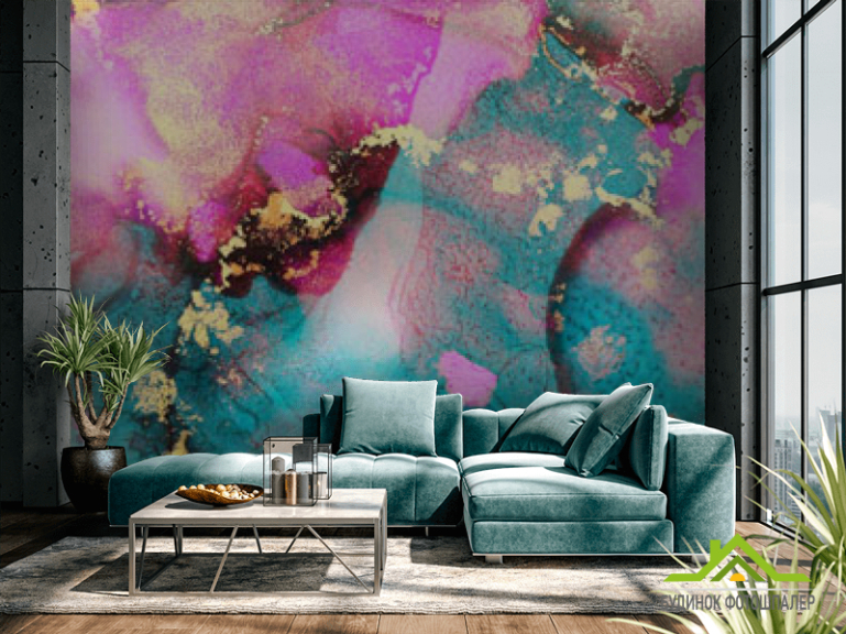 Фотообои Бирюзово-розовый флюид с золотом Фотообои Бирюзово-розовый флюид с золотом
