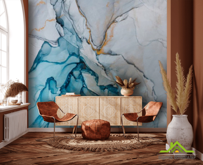 Фотообои Бирюзовый флюид разводы Фотообои Бирюзовый флюид разводы
