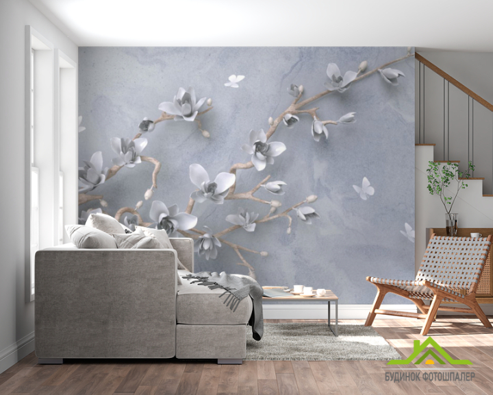 Фотообои Ветвь с цветами 3д Фотообои Ветвь с цветами 3д