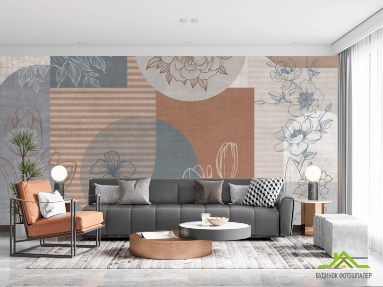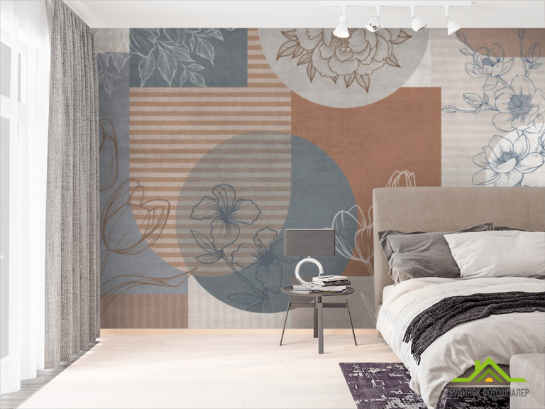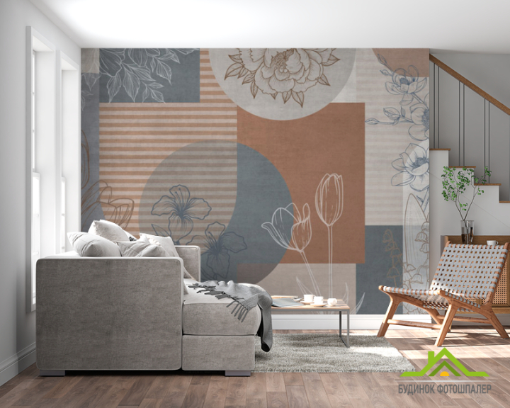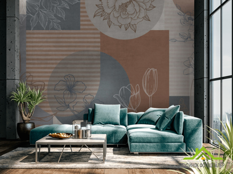 Фотообои Векторные цветы на фоне геомтерии. Фотообои Векторные цветы на фоне геомтерии.