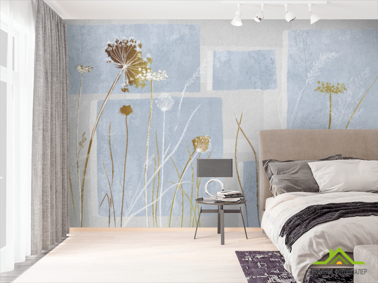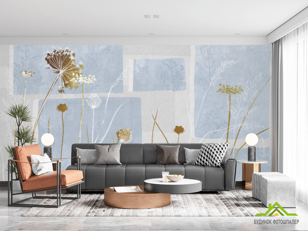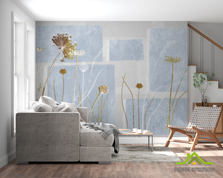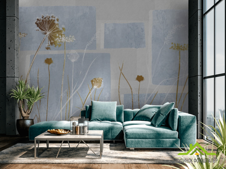 Фотообои Сухоцветы на синем дизайнерском фоне.