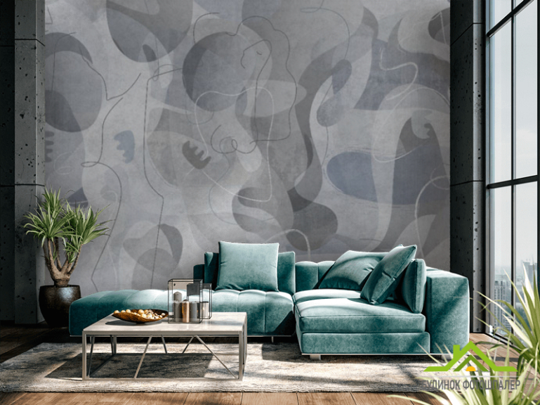 Фотообои Геометрические силуэты синяя Фотообои Геометрические силуэты синяя