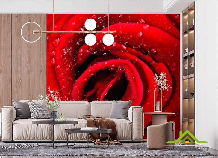 Фотообои Роза алая в росе Фотообои Роза алая в росе