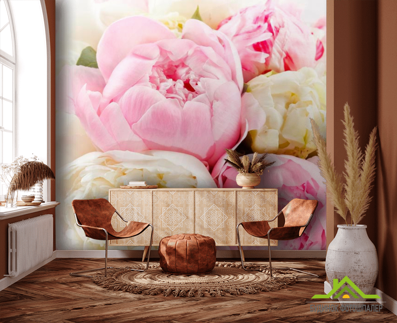 Фотообои Пионы белые и бежевые Фотообои Пионы белые и бежевые