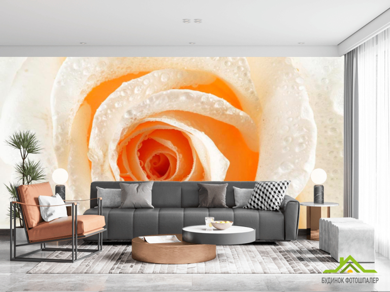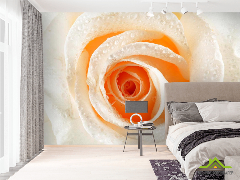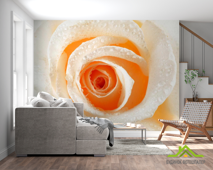 Фотообои Роза кремовая макро-съемка Фотообои Роза кремовая макро-съемка