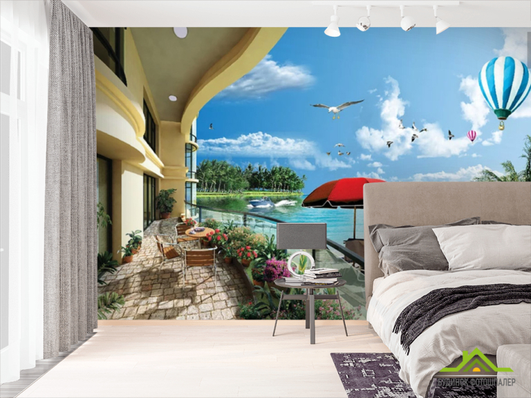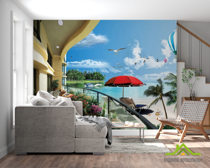 Фотообои Вид из балкона на море с терассой Фотообои Вид из балкона на море с терассой