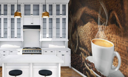 Чашечка горячего ароматного кофе — это классика жанра. Фотообои с изображением бодрящего напитка заполняющего белоснежную чашку, пробуждают аппетит, дарят хорошее настроение.