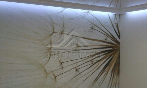 Зонтики одуванчиков, которые вот-вот будут сорваны потоком ветра и несутся вдаль —рисунок на фотообоях, прекрасно подходящих к любой комнате в вашем доме. Романтика и нежность — основной посыл коллажа, оклеенного на стену.