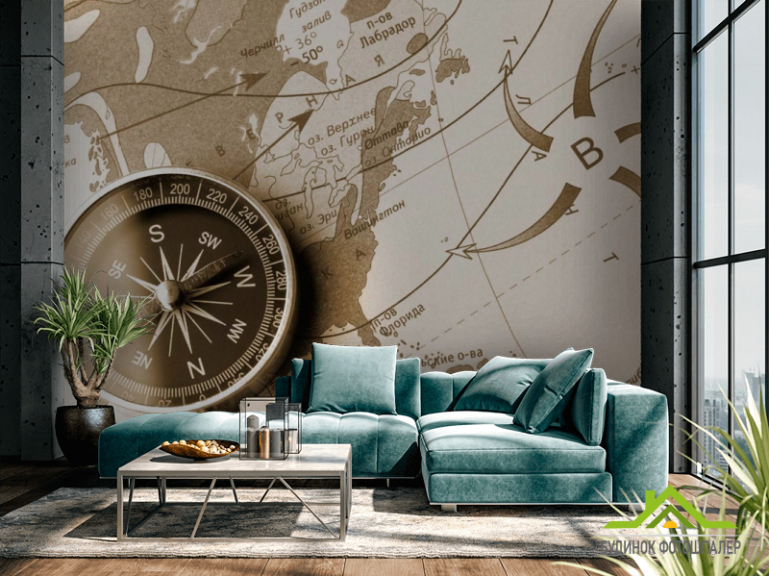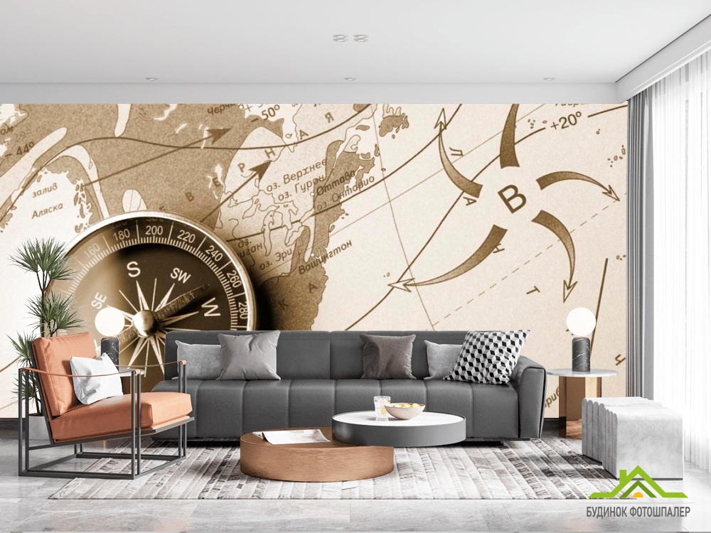 Фотошпалери Компас і карта Фотошпалери Компас і карта