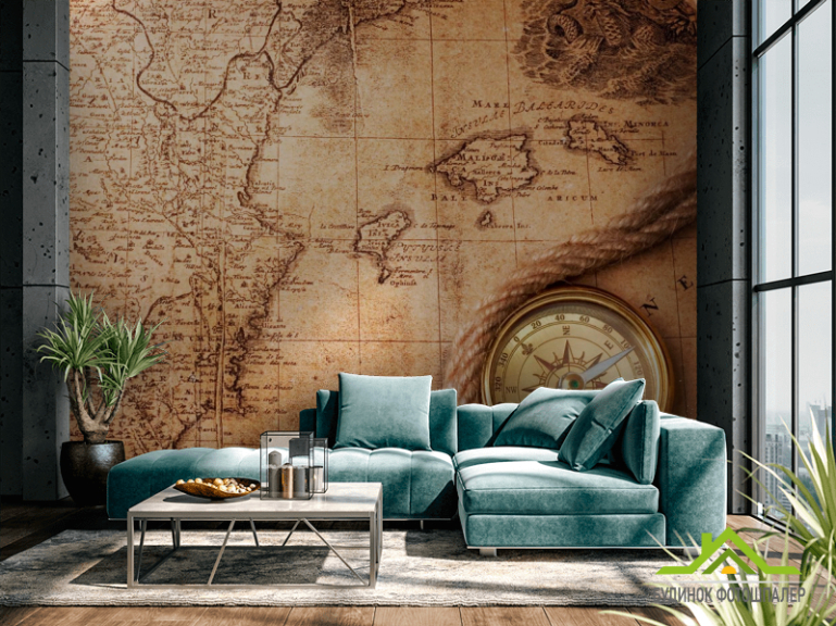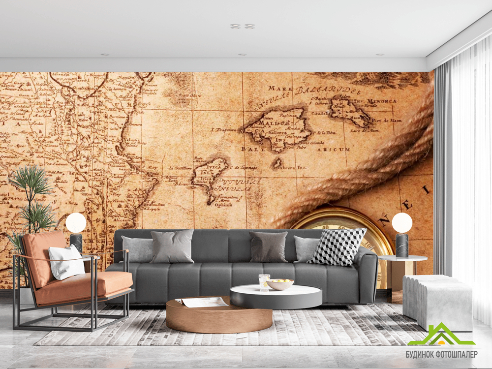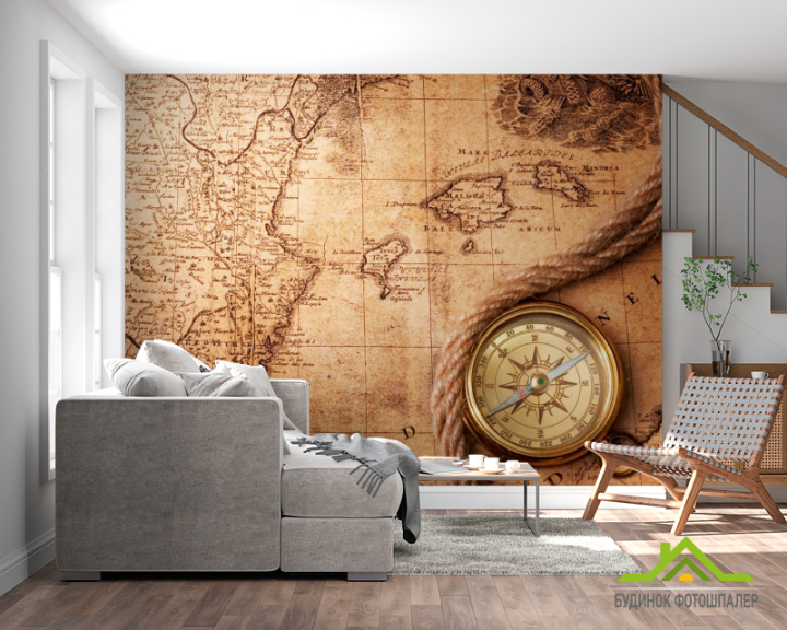 Фотошпалери Компас і карта світу Фотошпалери Компас і карта світу